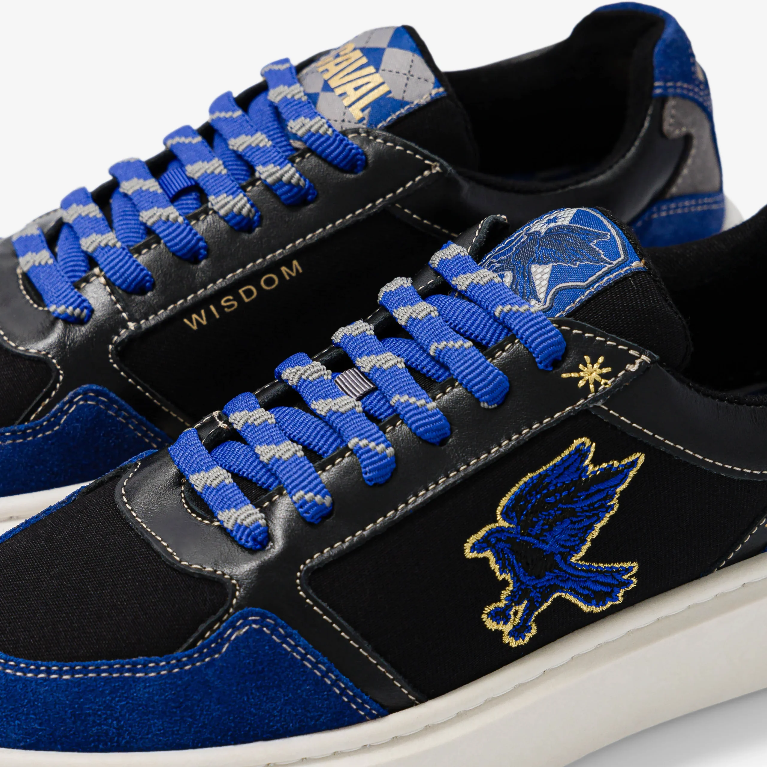 Intelligence et érudition : portez haut les valeurs de Serdaigle avec une paire au bleu profond spectaculaire. 🦅 Relevée par des touches de doré, la paire CAVAL x Ravenclaw affiche des jeux de matières et de couleurs subtils, pour CAVALer à toute vitesse. 💙💨