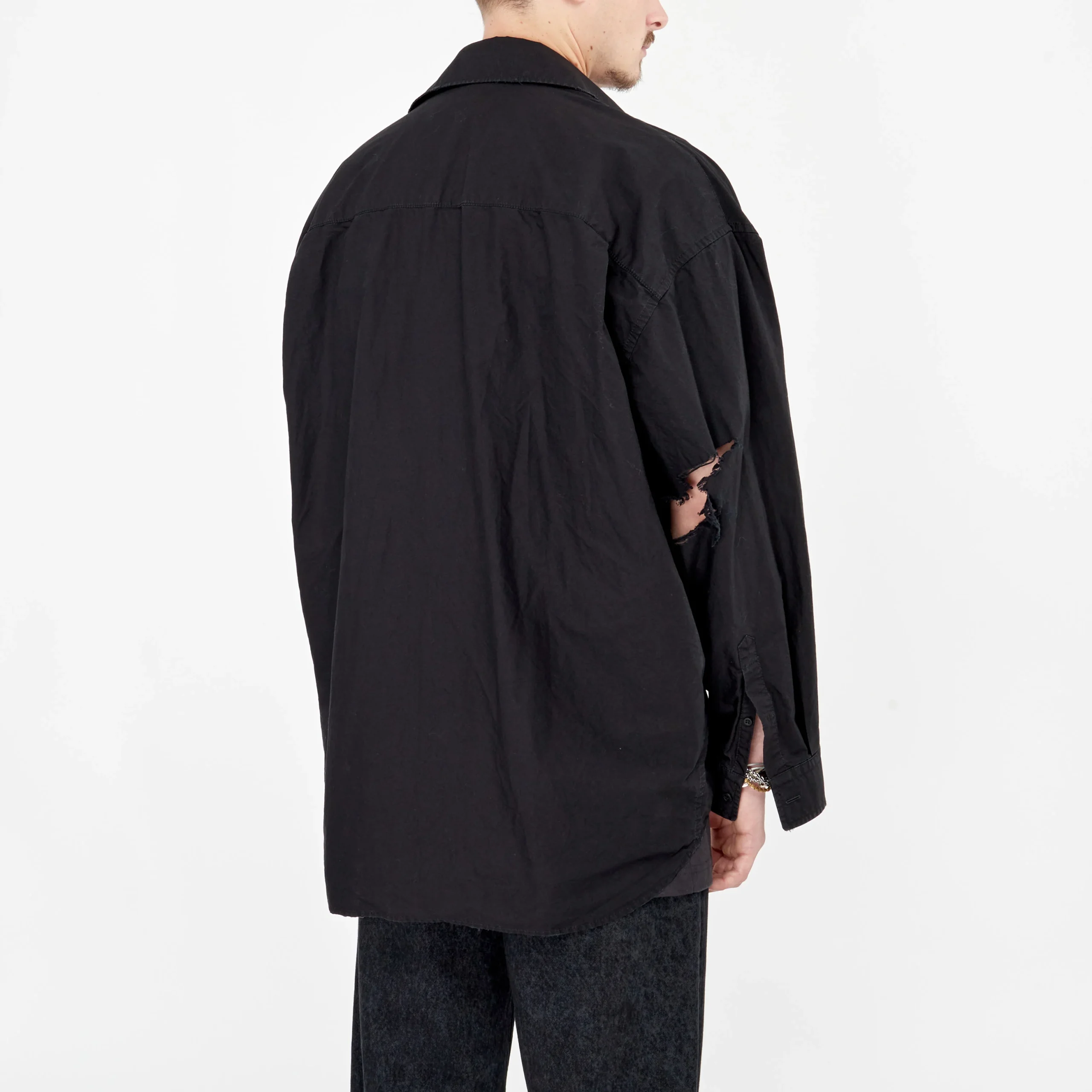 La Chemise Balenciaga Superposé Sport Icon Noir incarne l’audace stylistique de la maison Balenciaga, fusionnant une chemise classique avec un t-shirt pour une silhouette oversize distinctive. Confectionnée en flanelle de coton japonaise et jersey vintage, elle présente un logo brodé oversize sur le devant, une poche plaquée et des détails d’usure subtils, reflétant l’engagement de la marque envers l’innovation et le design avant-gardiste.