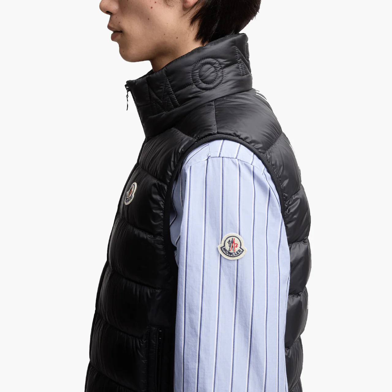 Le gilet Moncler Rocoque sans manches noir est une pièce hybride moderne qui allie performance technique, finition premium et esthétique urbaine.
