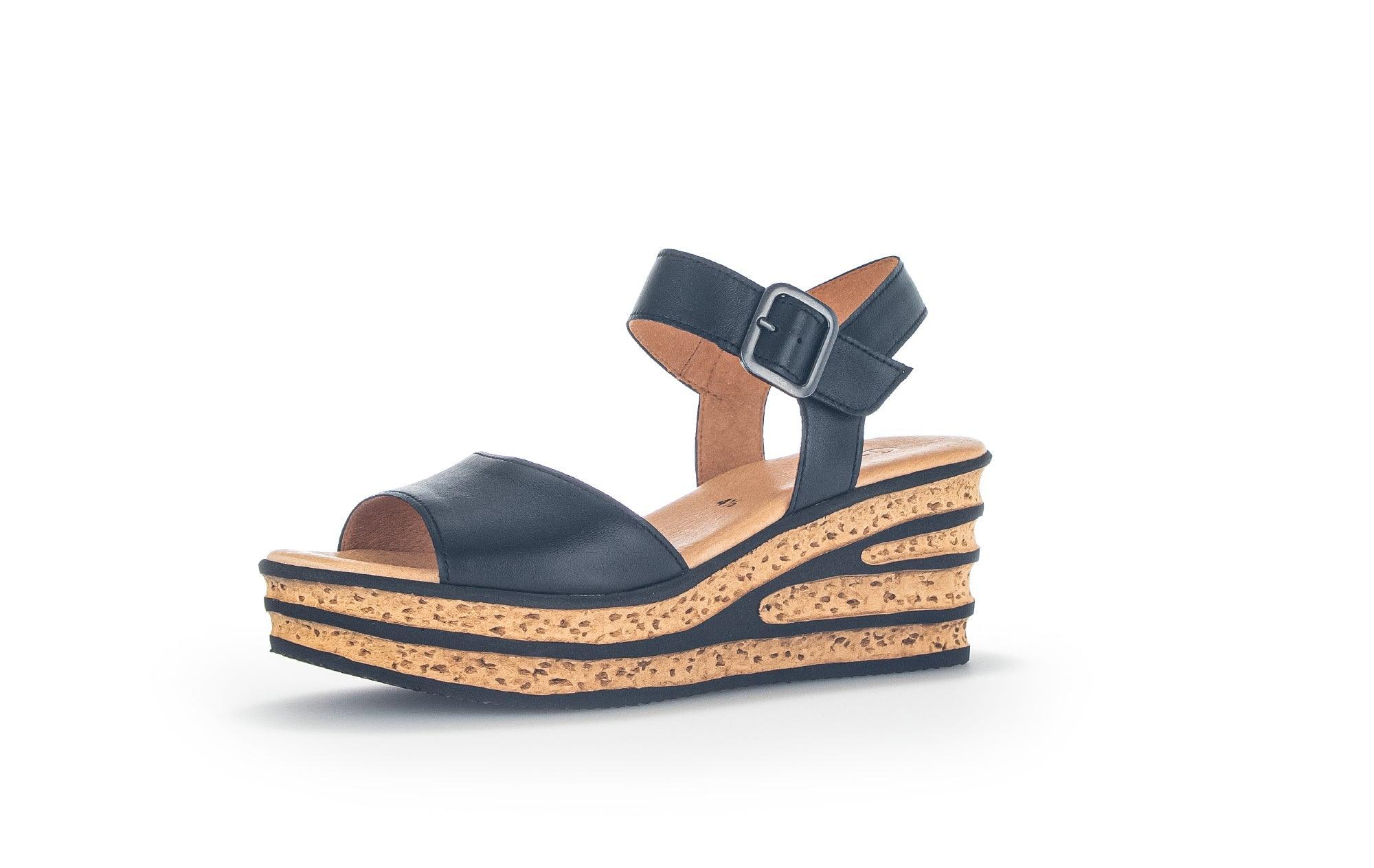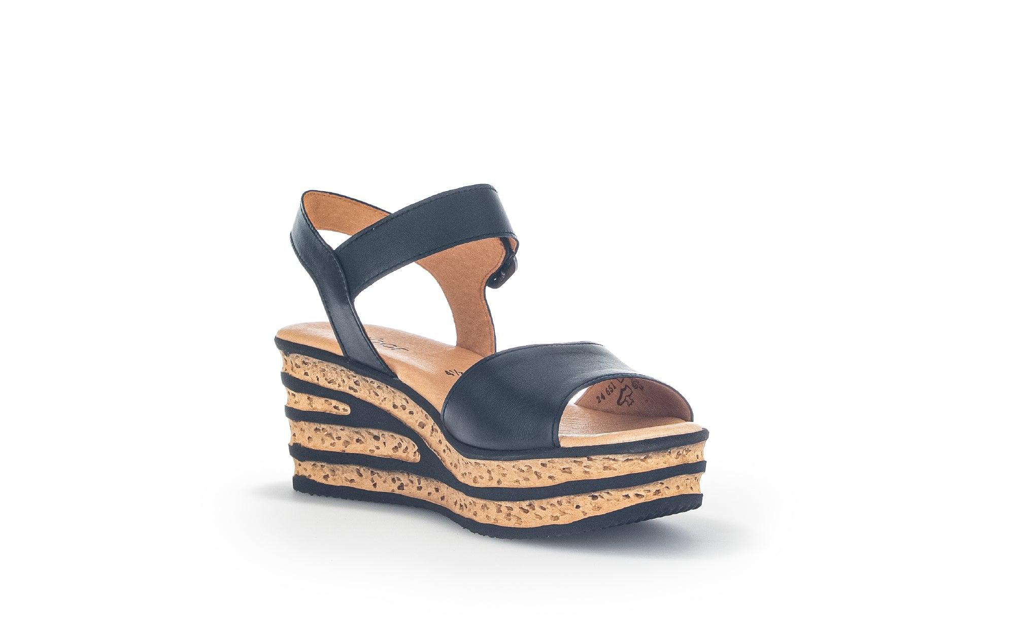 Cette sandale élégante dispose de nombreux atouts de confort : Programme Best Fitting – plus de largeur sur l’avant pied pour plus de confort, Première micro agréable, talon compensé de 35 mm avec inserts semelle décoratifs, semelle gomme souple. Le plus produit : la combinaison de coloris dessus/semelle, la bride cheville montée sur velcro pour un chaussant facile et pour s’adpater à tous les pieds ! Un Must d’esthétique et de confort pour toute garderobe !