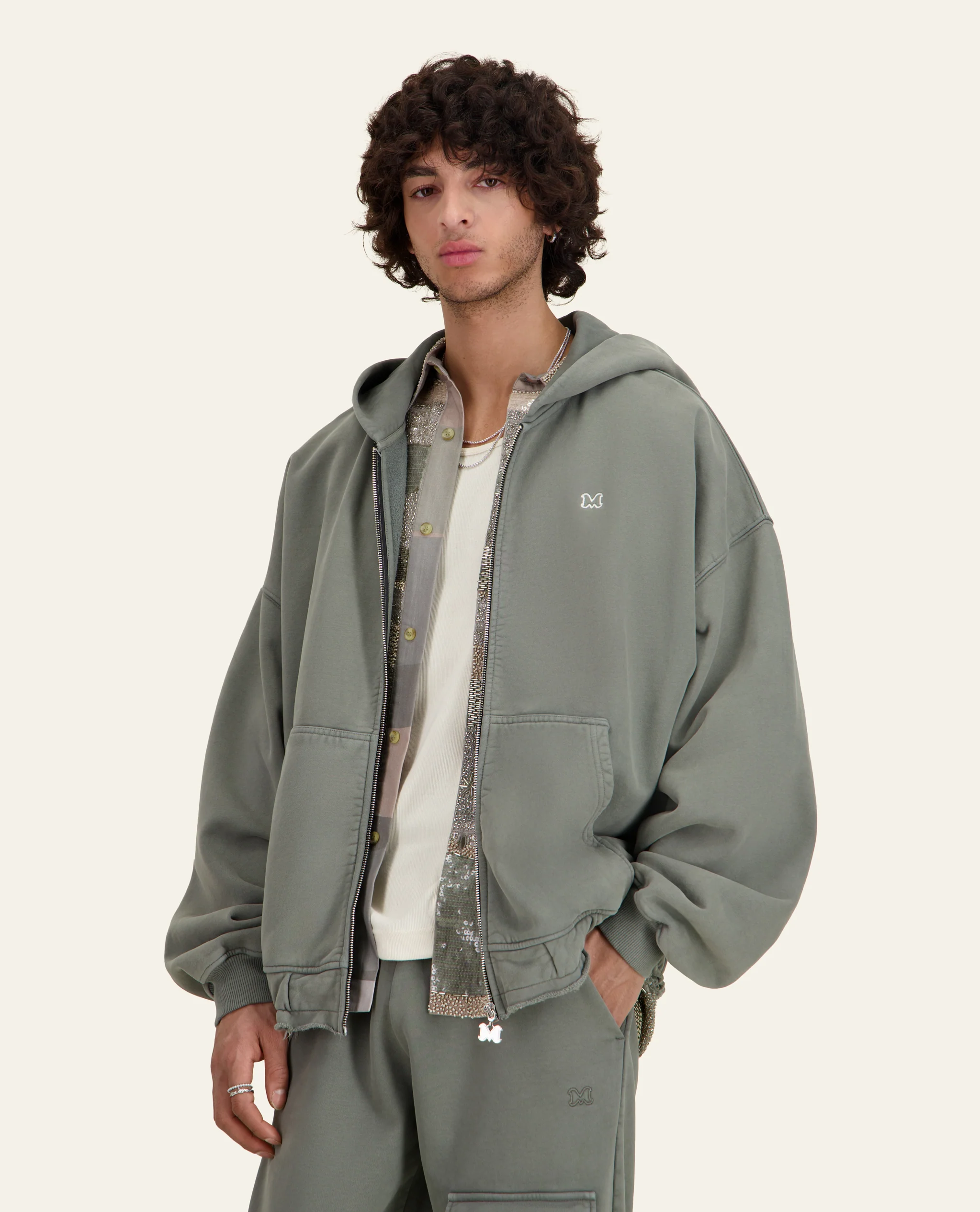 Hoodie zippé en molleton délavé– Coupe boxy oversize– Détail de ceinture bord franc– Fermeture éclair avec tirette logo en métal argenté– Bord-côte au bas des manches– Molleton teint en pièce et délavé pour un effet vintage– Poche kangourou– Logo Mouty brodé ton sur ton sur la poitrine Composition : 100% cotonFabriqué au Portugal Conseil fit […]