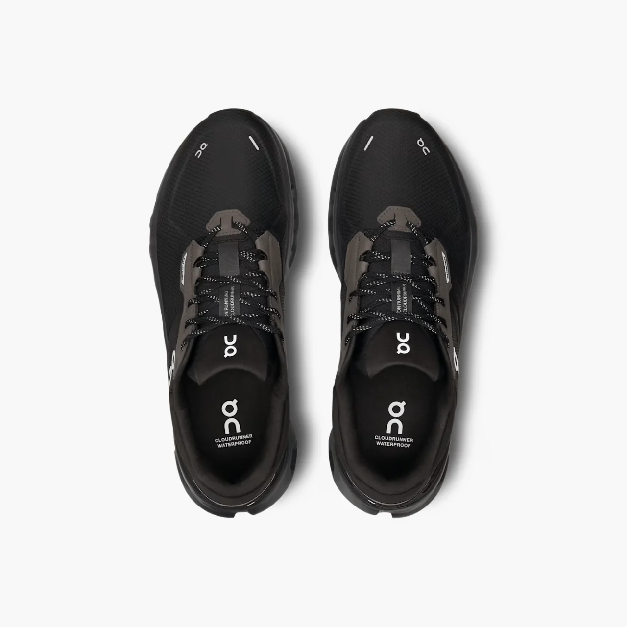Les On Running Cloudrunner 2 Waterproof Noir conjuguent protection imperméable, amorti CloudTec® Phase et design épuré. Une sneaker technique et élégante, idéale pour performer par tous les temps.