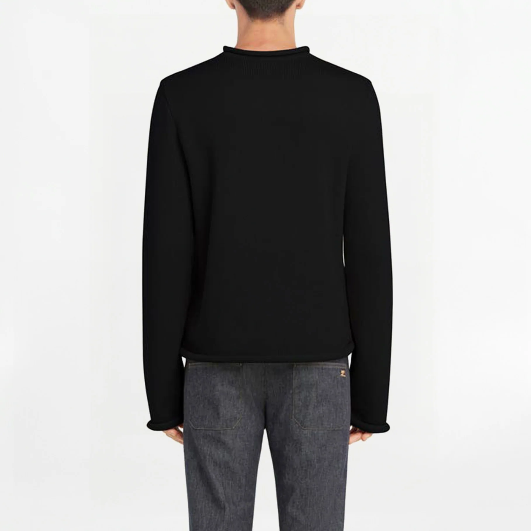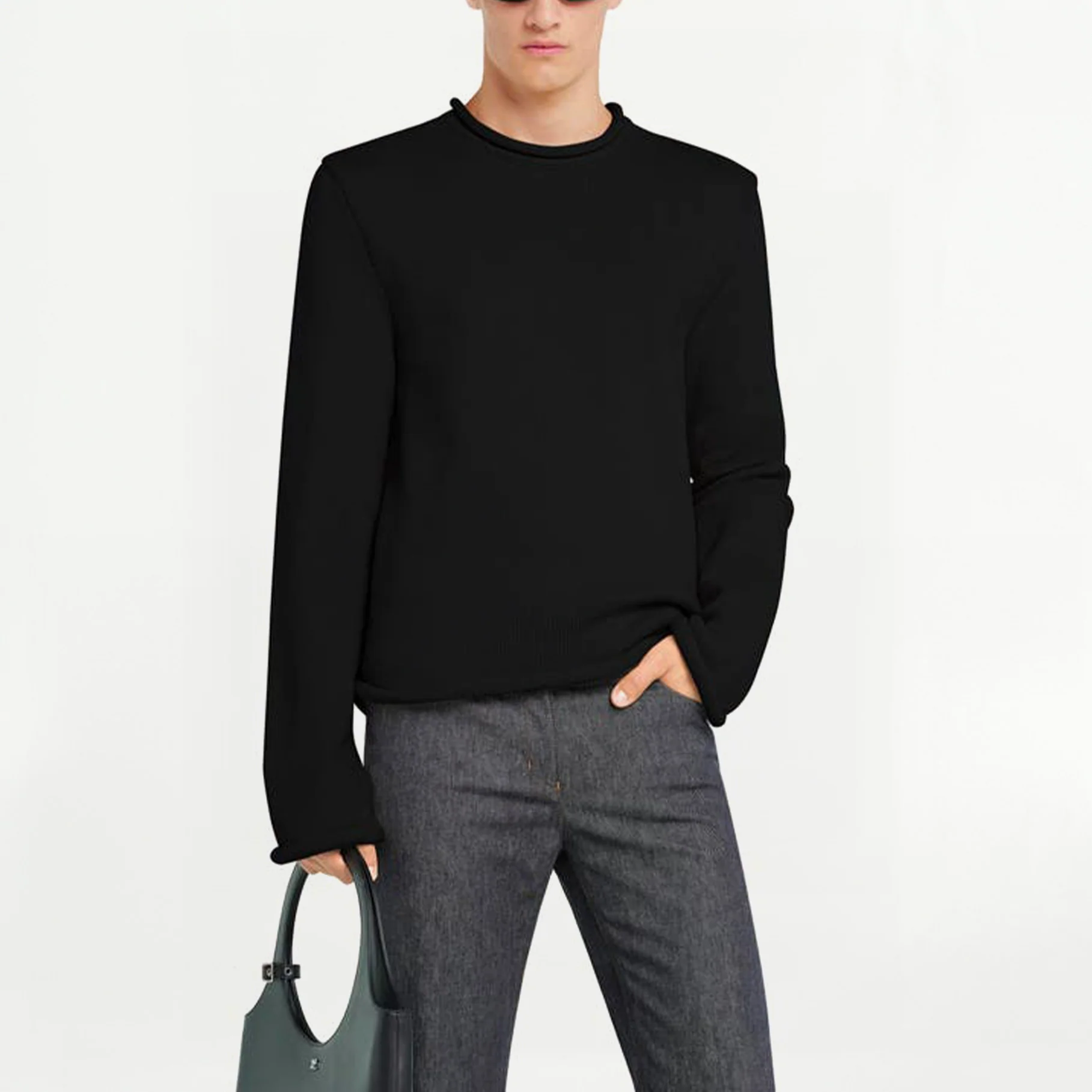 L’élégance parisienne s’exprime dans sa forme la plus pure avec ce pull côtelé Courrèges noir. Une pièce essentielle qui incarne parfaitement le minimalisme luxueux de la maison.
